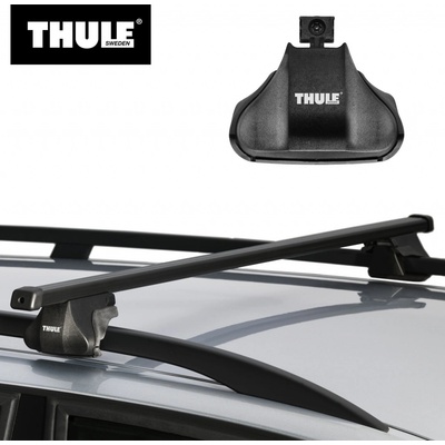Příčný střešní nosič Thule Smart Rack 784 pro vozidla s podélnými nosiči. Patky Thule Rapid Railing 755 pro klasické podélné nosiče - hagusy byly upraveny pro tento kompletní a...