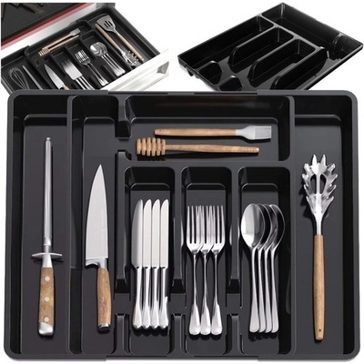 Ruhhy 24748 Plastový nastavitelný organizér do kuchyňské zásuvky, černá