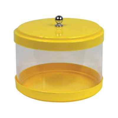 Nádoba čiré plexi, s plastovým víkem (žluté) prům.20, v.16cm