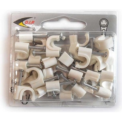 Příchytka kabelová bílá plastová příchytka + hřebík příchytka pro uspořádání kulatých kabelů jednoduché přichycení hřebíkem použití na zeď či nábytek barva: bílá cena za 1 ks