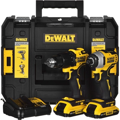DeWALT DCK2062D2T - Kompaktní a výkonná sada pro profesionální montáže i domácí použití. - Obsahuje příklepový vrtačko-šroubovák DCD706 a rázový utahovák DCF809. - Oba...