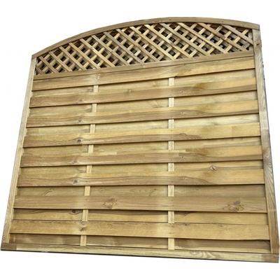 Cenově výhodný plotový prvek s obloukem a filigránsky vyříznutým okrajem (otvor 7 cm x 7 cm) a zelenou tlakovou impregnací, vhodný pro okrajový prvek 90 cm x 157/90 cm. Plot do...