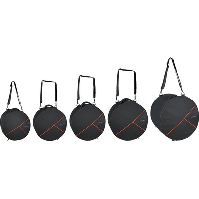 Sada gigbagů pro bicí soupravu, rozměry 20x18, 10x9, 12x10, 14x14, 14x6,5" Premium Line Gewa. - Cordura 600 Denier, černý - odolný proti vodě a roztržení - 20 mm...