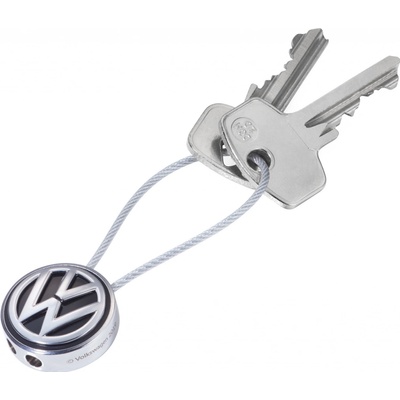 Klíčenka logo VW, kulaté, drátěná smyčka, smaltovaná, litina, chromovaná, lesklá, černá / stříbrná. Pro všechny řidiče a fanoušky VW. Díky inovativní funkci drátěné smyčky...