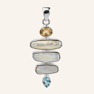 Tento jedinečný přívěsek spojuje přírodní perly, citrín a modrý topaz do harmonické kompozice, která působí jako talisman světla a vnitřní rovnováhy. Citrín je od nepaměti...