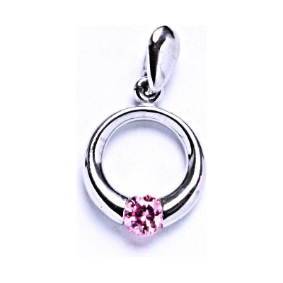 stříbrný přívěsek velikosti 14 mm, šperky stříbrné zdobeny růžovým zirkonem. Naše šperky mají povrchovou úpravu-čišté Rhodium,které nevyvolává žádné alergické reakce.
