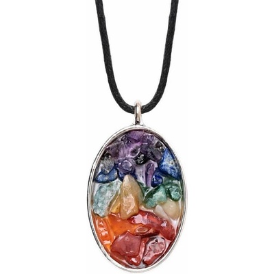Orgonit okouzlující čakrový přívěsek ve tvaru ve tvaru oválu z kousků barevných polodrahokamů v barvách čaker dle indické tradice harmonizuje a dobíjí energii čaker, těla i...