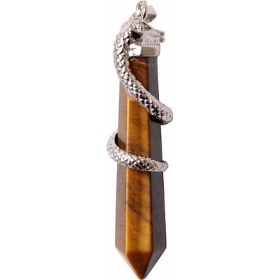 Krásný přívěsek z tygřího oka ve tvaru krystalu, ovinutý hadem. Velikost tygřího oka cca 4,8 cm, cca 6,6 cm včetně závěsného očka. Kovové části jsou z obecného...