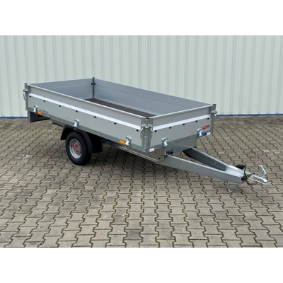 Nebrzděný přívěsy s celkovou hmotností 750 kg. Ložná plocha 2050x1090x300 mm. Provedení s "V" ojí, plechové bočnice s Al-Zn úpravou, 13" kola, 7pólová elektroinstalace,...