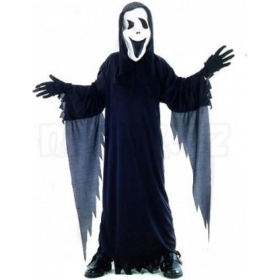 Staň se hvězdou karnevalu Dětský kostým se šklebivou maskou z tebe udělá strašlivý přízrak. Oblékni si háv a proměň se v děsivou postavu s nočních můr. Můžeš postrašit rodiče...