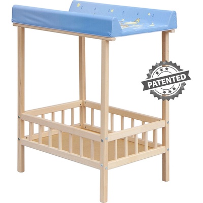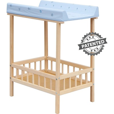 Praktický přebalovací pult se dvěma policemi z HDF. Vrchní část z polyuretanu potažená omyvatelným PVC, vyztužená MDF. Elegantní, jednoduchý design zapadne do každého interiéru.