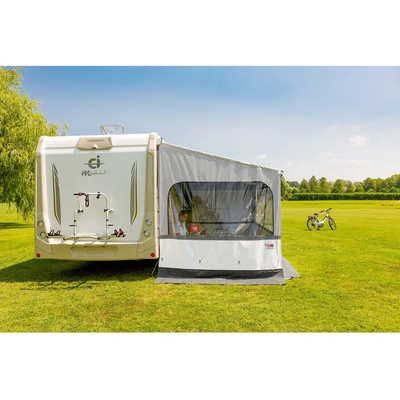 Boční stěna pro rozšíření pocitu soukromí pod markýzou Fiamma - tato boční stěna Vás ochrání před větrem či sluncem a přitom vás díky oknu nepřipraví o potřebné světlo...