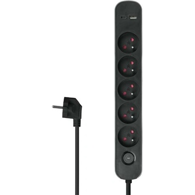Ochranný pásek s USB nabíječkou Technické parametry: 5 zásuvek 2P+T. Max. 16 A (3680 W). 2 x USB (A + C), DC 5 V, max. 2,4 A 12 W) Kabel: 3G1 mm2 Typ kabelu: H05VV-F. Jistič...