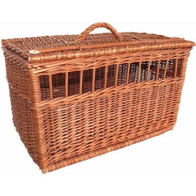 Přepravka na domácí mazlíčky vyrobená z loupaného vrbového proutí. Barva hnědá. Rozměry: d 45 x š 28 x v 28/33 cm