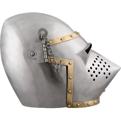 Rytířská přilba Pší nos 1390 - 1,6mm ocel Tato helma je vyrobena z 1,6 mm silné oceli, jejíž jednotlivé části jsou pečlivě snýtovány dohromady. Povrch helmy je hladký, v kovově...
