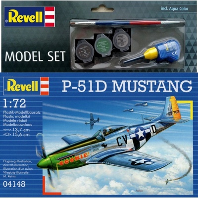 Revell North-American P-51D Mustang Model Set letadlo 1:72, 34 dílů + barvy + lepidlo + štětec Plastikový model letadla REVEL 04148 ke slepení. Velikost: 1:72; 137x156mm....