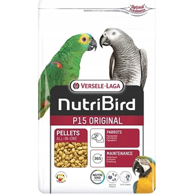 VL Nutribird P15 Original pro papoušky 1kg Jednobarevné extrudy pro velké papoušky s tuzemským ovocem - to je nové krmivo Versele-Laga P15. Základní extrudované pelety VL...