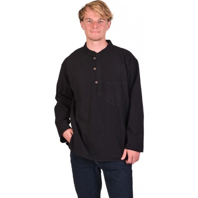 Černá pánská košile-kurta s dlouhým rukávem, kapsičkou a zapínáním na tři knoflíky je stylovým a pohodlným kouskem pro každodenní nošení. Jednoduchý, ale elegantní design s...