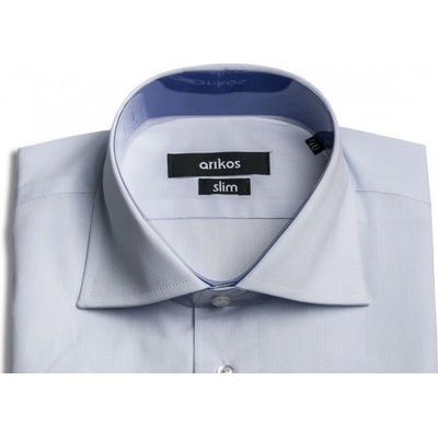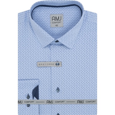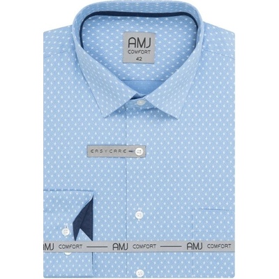 Košile s dlouhým rukávem od značky AMJ ve světle modré barvě s bílým jemným vzorem. Zapínání na světlé knoflíky. Má užší projmutý střih. Zapínání rukávů na klasický knoflík....