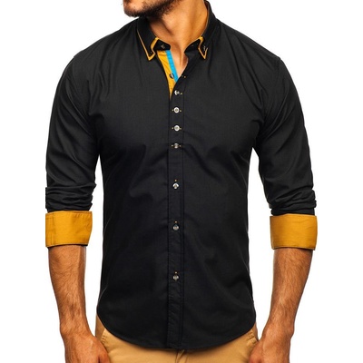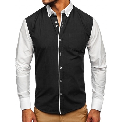Pánské elegantní černé košile Bolf s kontrastními rukávy a límcem. Černá pánská košile je vypasovaná na tělo, zeštíhluje postavu, má zaoblený spodní díl, takže ji můžete nosit i...