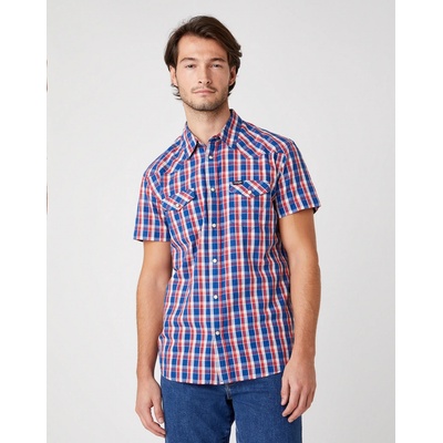 Košile v modré, červené a bílé kombinaci v kostkovaném vzoru. Košile westernového stylu se dvěma kapsičkami a se zapínáním na druky. Na levé kapsičce je tmavý štítek s logem...