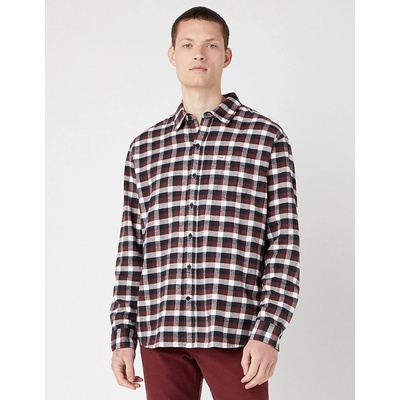 Flanelová košile s dlouhým rukávem v černé, hnědovínové a bílé barvě. Má jednu otevřenou kapsičku na hrudi a zapínání na knoflíky. Ušita v klasickém mírně projmutém střihu...