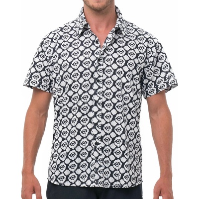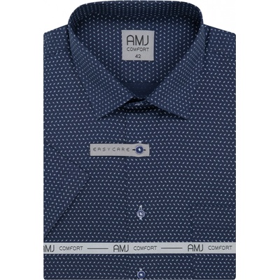 Košile s krátkým rukávem od značky AMJ v tmavě modré barvě s jemným bílým vzorem. Zapínání na tmavě modré knoflíky se světlým ohraničením. Má klasický rovný střih a kapsičku na...