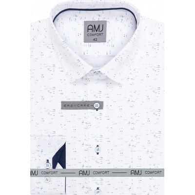 Pánská vzorovaná košile AMJ Comfort s dlouhým rukávem v projmutém (slim) střihu do a. Pánská košile v bílé barvě se vzorem tmavě a světle modrých puntíků tvořící žíhání s tmavě...