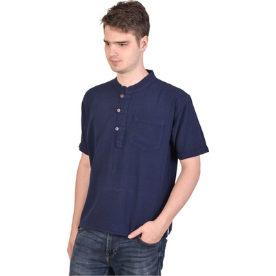 Tato tmavě modrá pánská košile si určitě najde ve vašem šatníku své místo. Má krátký rukáv a praktickou kapsičku, do které si můžete dávat drobnosti. Zapínání má na tři...