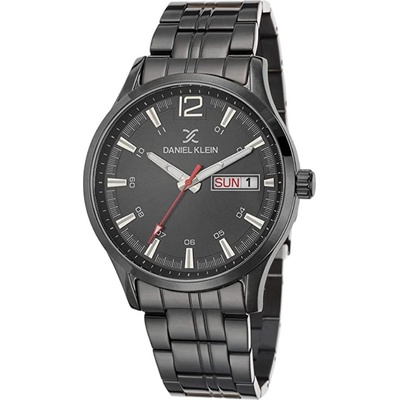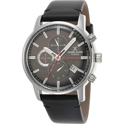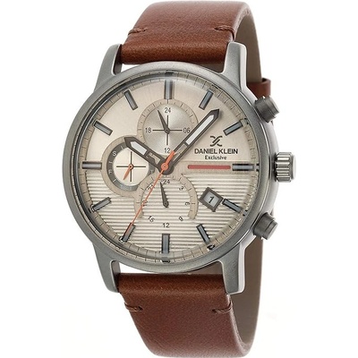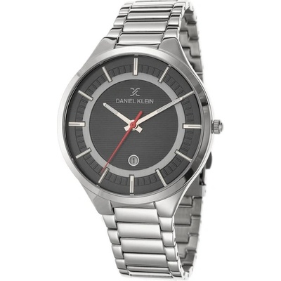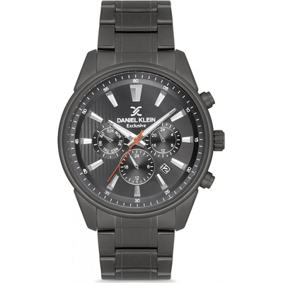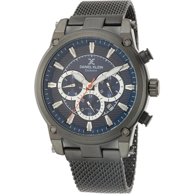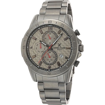 Pánské náramkové hodinky Daniel Klein. Kovové pouzdro a tah hodinek má šedou barvu. Hodinky mají multifunkčního ukazatele data, celých hodin a dne v týdnu, vteřinovou, minutovou...