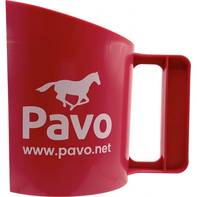 Plastová odměrka Plastová odměrka na krmivo nejen pro koně. - z pevného plastu - s logem Pavo z obou stran - objem: 1.5 l - barva: růžová