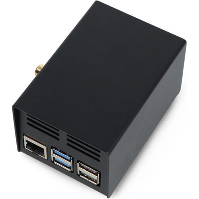 Hliníková krabička s vestavěným chladičem a gumovými nožičkami pro Raspberry Pi 4B.
