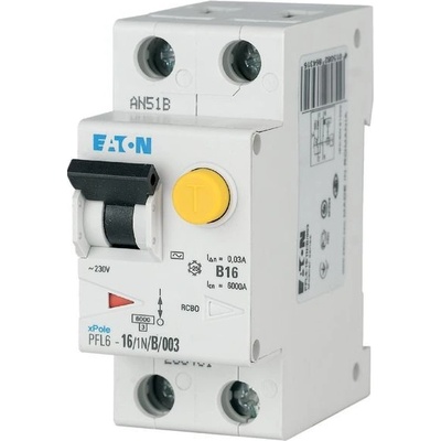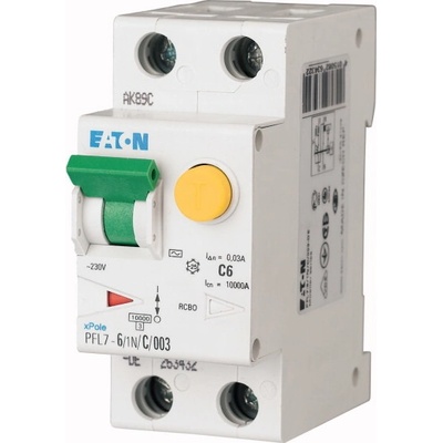 Jističochránič Eaton PFL6 1P+N, B10, 30 mA (typ A), vypínací schopnost 6 kA.