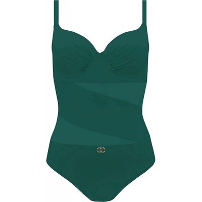 Jednodílné dámské plavky K 8152 - Effy - jednodílné dámské plavky s košíčky, které je možné vyjmout. Vrchní část zelená, černý lem okolo košíčků, náročné zpracování. Podprsenka...