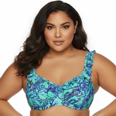 Dvoudílné plavky - vzorovaná podprsenka z mikrovlákna - měkké košíčky s kosticemi - poháry spojené nápadnou kravatou - nastavitelné, neodnímatelné ramenní popruhy - obvod...