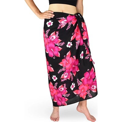 Sarong Pareo REN Hibis černý růžový květ