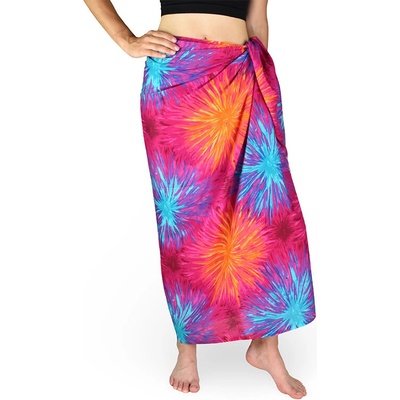 Velký plážový šátek sarong je zdobený ručně batikovaným vzorem duhové spirály. Pestrobarevný šátek sarong je stylový módní doplněk s univerzálním využitím. Snadno z něj uděláte...