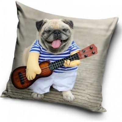 Povlak na polštářek Mops hraje ukulele je skvělým doplňkem do každého interiéru. Potěší příjemným materiálem, zapínáním na zip a vtipným designem.