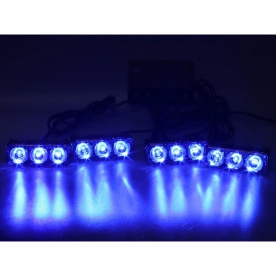 řídavná modrá výstražná LED světla pro externí montáž. Technické parametry: • 12x výkonné LED diody 1W, (4x světlo, v každém 3x LED) • minimální odběr proudu • 8 různých přednastavených programů pro blikání • dálkové ovládání (zapnutí i přepínání programů) - dosah...