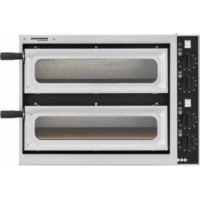 Pec na pizzu, 2 400 W, Prismafood | Basic 2/40 Vetro Celá přední strana vyrobena z nerezavějící oceli Povrch z oceli malované na černo Izolace z minerální vlny Osvětlená komora Dno komory vykládané šamotem Ohřívací těleso v každé komoře (nahoře i dole) Natavování...