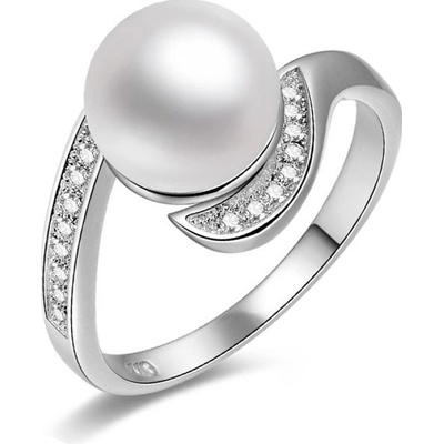 Exkluzivní stříbrný prsten z designové řady Nefertitis Collection s kultivovanou bílou sladkovodní perlou, tzv. freshwater. Perla je doplněna kubickými zirkony pro...