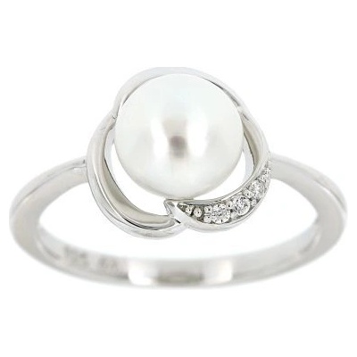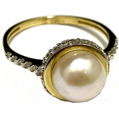 Zlatnictví Zlatíčko zlatý prsten s bílou perlou a zirkony 201.00087