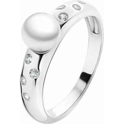 Stříbrný prsten s perlou a zirkony AR5705 - Elegantní dámský stříbrný prsten vyrobený v ryzosti 925/1000. Prstenu dominuje bílá syntetická perla, kterou hezky doplňují třpytivé...