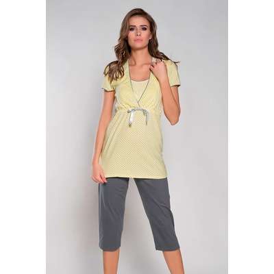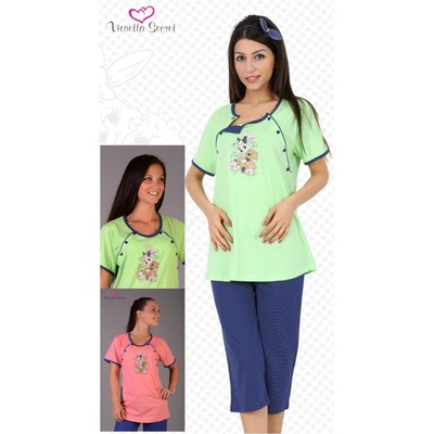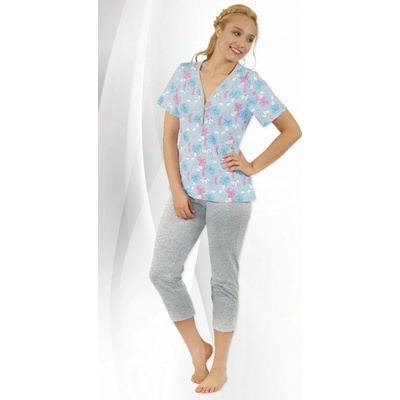 Dámské tříčtvrteční pyžamo Regina 799 - krátký rukáv, vzorovaný vrchní díl, léga na rozepínání na cvočky, ulehčí oblékání. Vhodné i pro maminky, ke kojení. Kalhoty jsou...