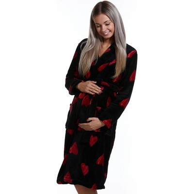 Černý těhotenský župan do porodnice se srdíčky Dlouhý župan s elegantním límcem do porodnice na kojení Huňatý materiál, velmi jemný na dotek soft dlouhý chlup Župan je...