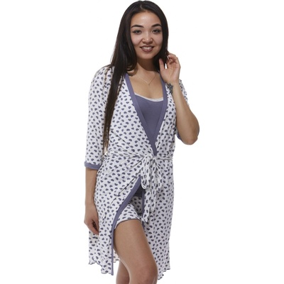 Mateřský komplet do porodnice z dokonale jemné viskózy. Kojící pyžamo má úzká ramínka na kojení miminka. Lehký župan stejného vzoru bez zapínání, převazuje se páskem. Viskóza...