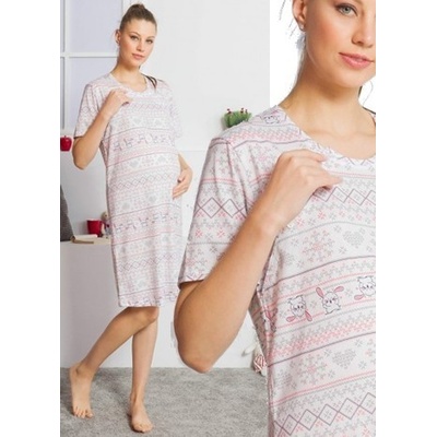 Oboustranně rozepínaná noční košile pro maminky, v pastelových barvách, potištěna zimními, severskými - norskými vzory. Košile má krátký rukáv, oboustranné rozepínání je na...