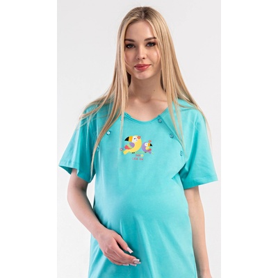 Dámská bavlněná mateřská noční košile Papoušek. Noční košile je svým střihem určená na dobu těhotenství, do porodnice i ke kojení. Ke kojení slouží průstřihy po stranách...