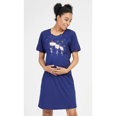 Dámská těhotenská košile 9992 blue Doctornap - tmavě modrá barva - z vysoce jakostní bavlny - s krátkými rukávy - zapínání na knoflíky - ozdobená potiskem na přední...