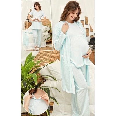 Azurový puntíkatý set kojící i těhotenský, pyžamo a župan. Tento komplet na kojení s nádechem luxusu je perfektní na doma, do porodnice, i na cesty. Vždy budete mít příjemný...